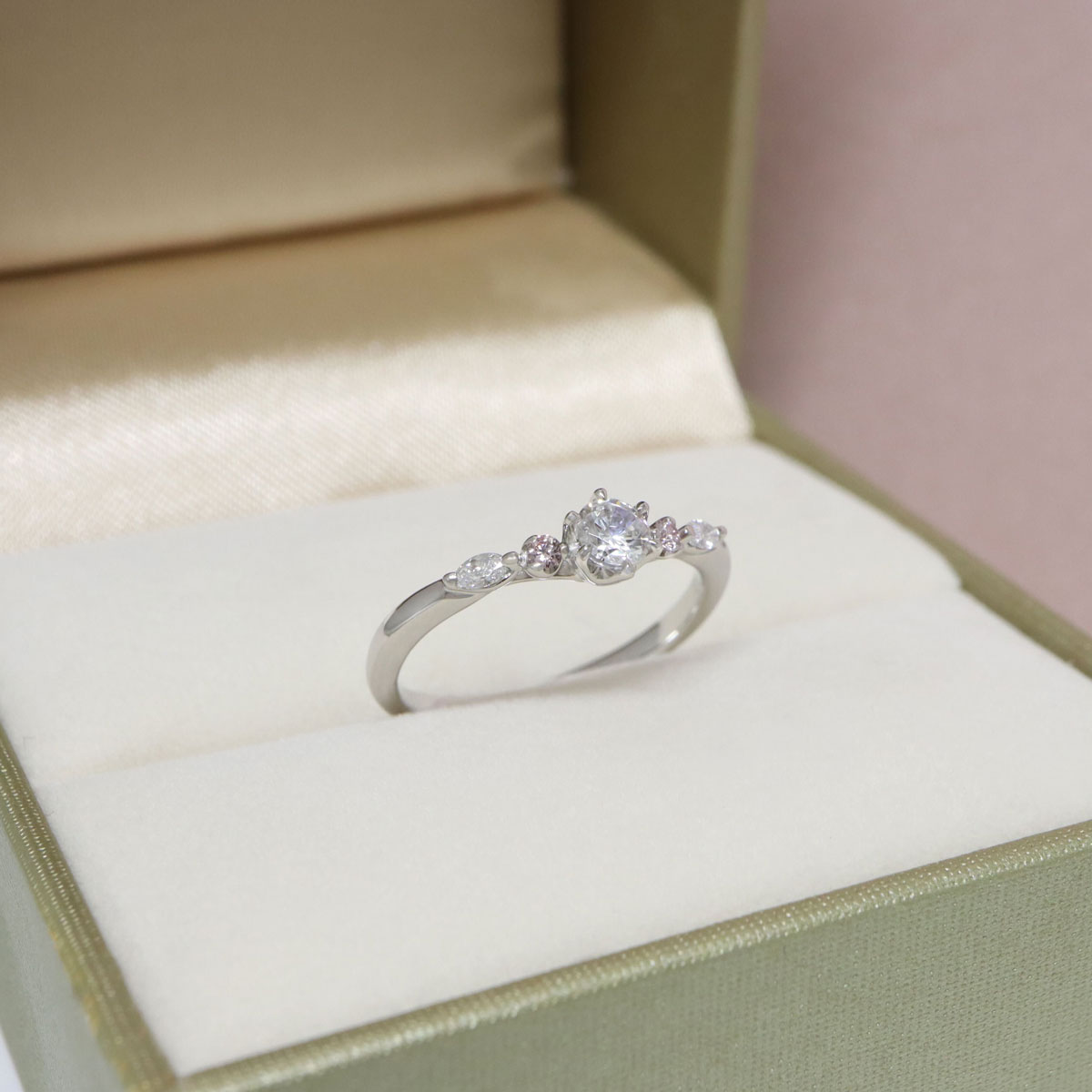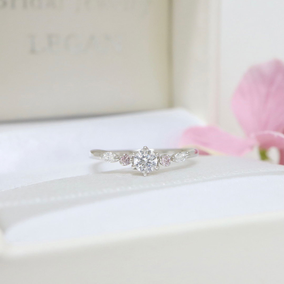 Lupino, Na Linguagem Das Flores, Significa “Sempre Feliz”. Um Diamante Rosa E Um Diamante Marquise Oval Especial São Cravejados Simetricamente Em Cada Lado Do Diamante Central, Criando Uma Sensação Especial. A Linguagem Dos Diamantes Rosa É “Amor Eterno”, E Eles Zelarão Gentilmente Pela Felicidade Da Noiva.