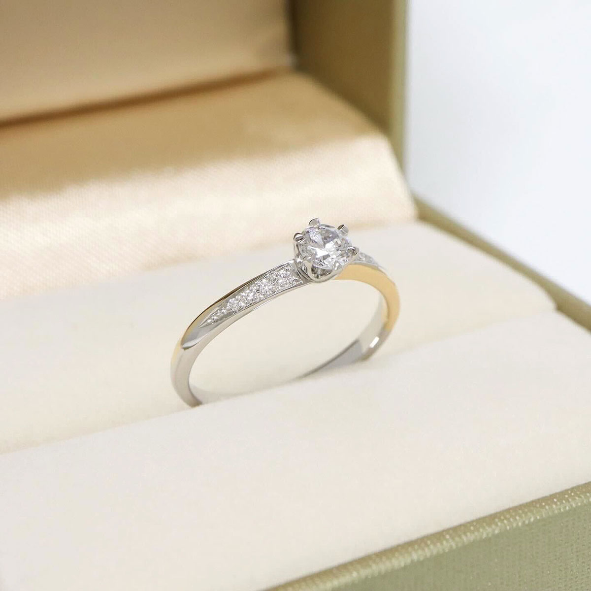 Ricco Em Espírito, Um Anel De Noivado Impressionante Com Hastes Suavemente Curvas, Onde Diamantes Cravejados Realçam O Brilho Do Diamante Central.