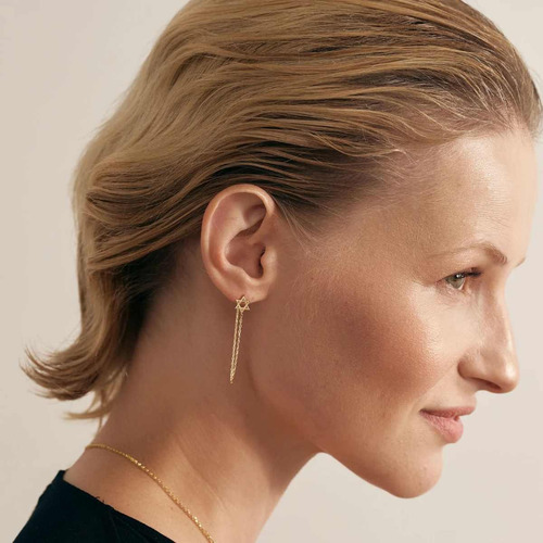 Seja o primeiro a avaliar “Brinco Feminino Ouro 18k Estrela De Davi Com Correntes Luxo”