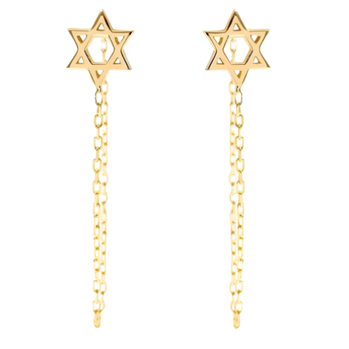 Brinco Feminino Ouro 18k Estrela De Davi Com Correntes Luxo