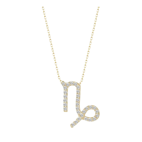 Colar Feminino Ouro 18k Signo Capricórnio Cravejado Diamante